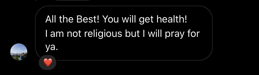 그런걸 다 쳐내고, '사념 없이 호흡 집중 다시 10회!' 하려다, 캄에서 배운 명상에서 때론 'Just let them(the thoughts) be.' 하는 것이 생각나 자연스레 내비두기도 했다. 최근 아파서 걱정을 많이 하자 날 응원해주는 친구들의 메세지를 모아보았다. 오늘 이렇게 보니 내게 정말 큰 힘이 된다는걸 다시 한 번 느낀 하루다. 꼭 기억하고 앞으로도 힘들 때 이겨내야지.